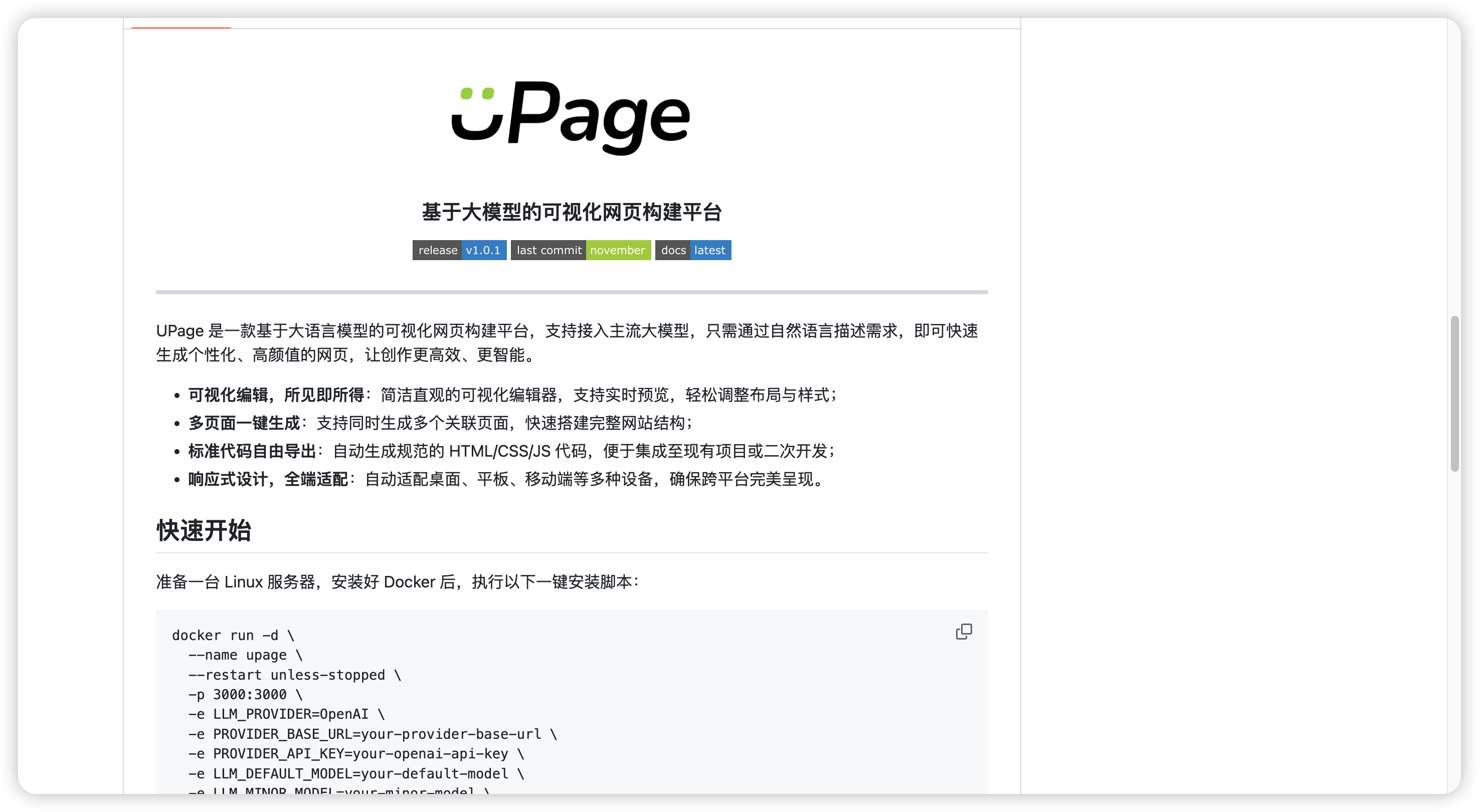 如果你想构建一个网站,但你又不会写代码,在github上就有这么一款开源的AI建站项目UPage,相信他一定会帮助到你