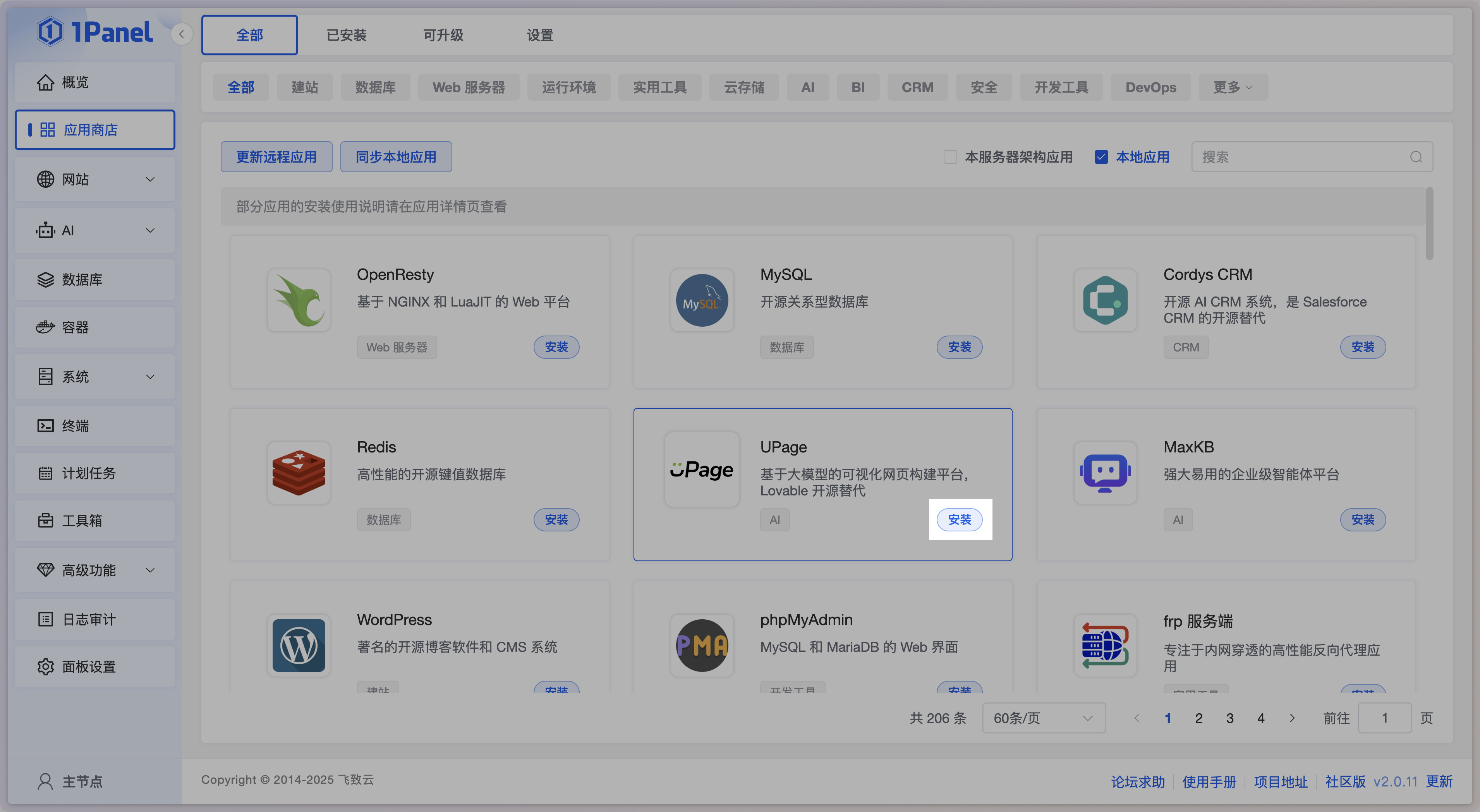 进入应用商店应用列表,选择其中的 UPage 应用进行安装。